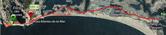 Reconnaissance de 36 kms des 45 proposés Samedi sur le Raid des Sables aux Saintes Maries de la Mer que je fais en équipe avec Olivier. 10 kms de courses, 5 de Canoë et 30 de VTT.